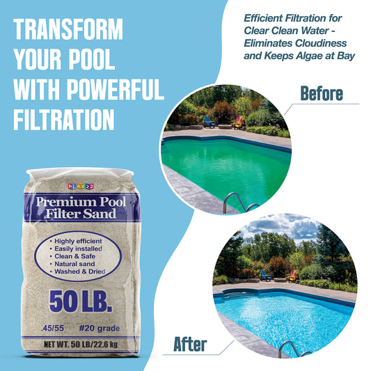 Play22 Pool Filter Sand - Pool Sand, 50 Pound Bag Silica Sand for Pool Filter, Non Staining, Non Corroding for Above Ground and Inground Swimming Pool Care