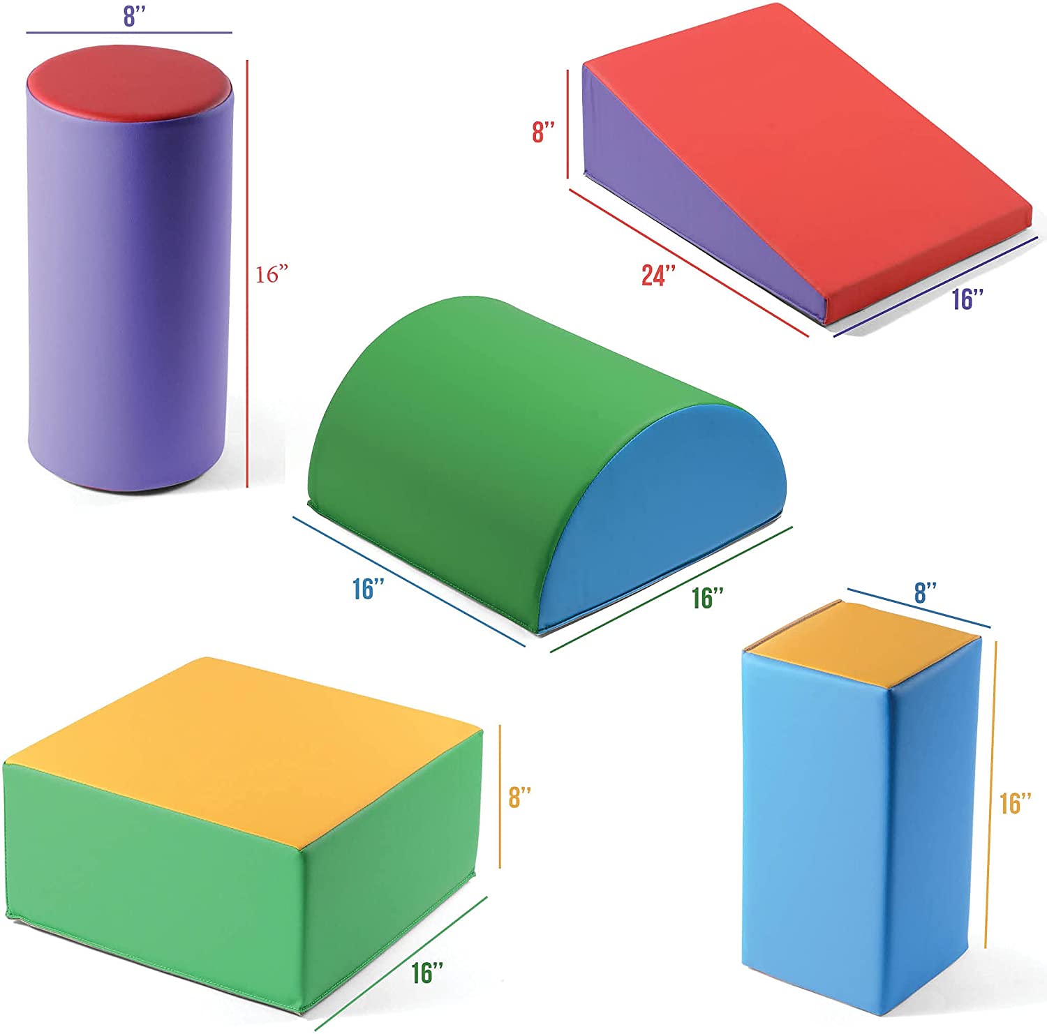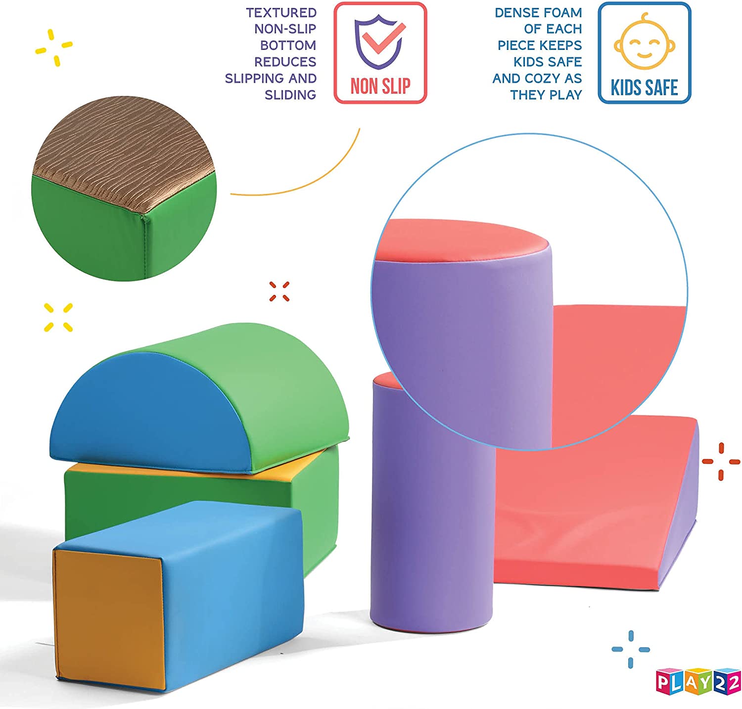 - Safe and Soft: Soft, dense foam with tightly sewn seams prevents tears, and the play set has no hard surfaces or sharp corners.