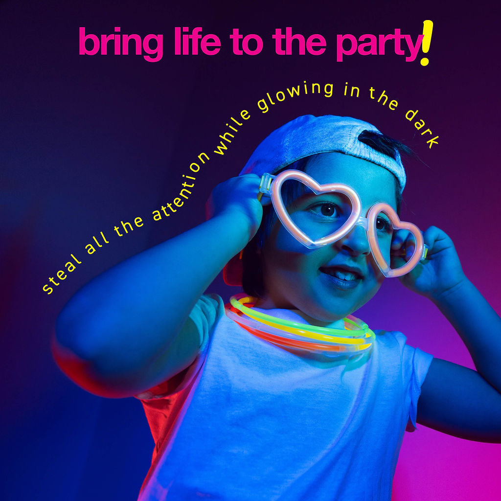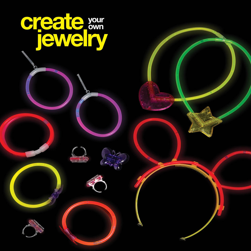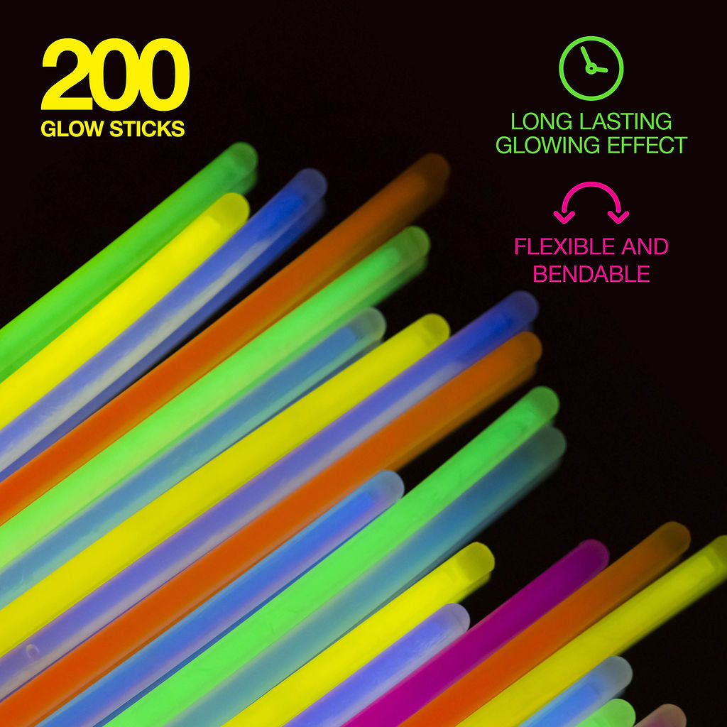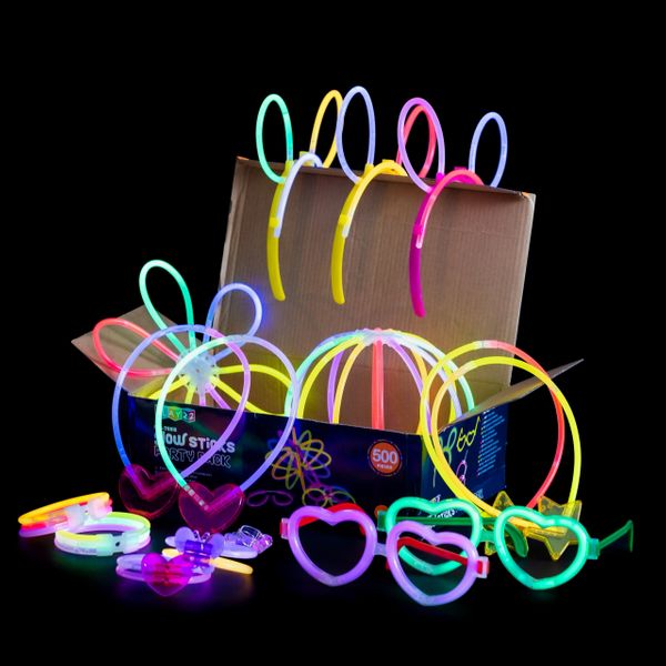 Glow In The Dark Party Supplies 500 Pack 200 Long Lasting Glow Sticks And 100 Connectors For Glow Bracelets And 100 Accessories, (Total 500 Pieces) - The Party Pack Includes : 200 8" Glow Sticks - 200 Bracelet Connectors - 24 Eyeglasses Connectors (8 Pairs) - 6 Heart Eyeglasses Connectors (2 Pairs) 8 Hairpin Connectors - 18 Flower/Ball Connectors - 12 Triple Connectors - 4 Butterfly Bracelet Connectors - 4 Heart Bracelet Connectors - 8 Clip-On Earring Connectors (4 Pairs) - 4 Rings = 4 1-Inc