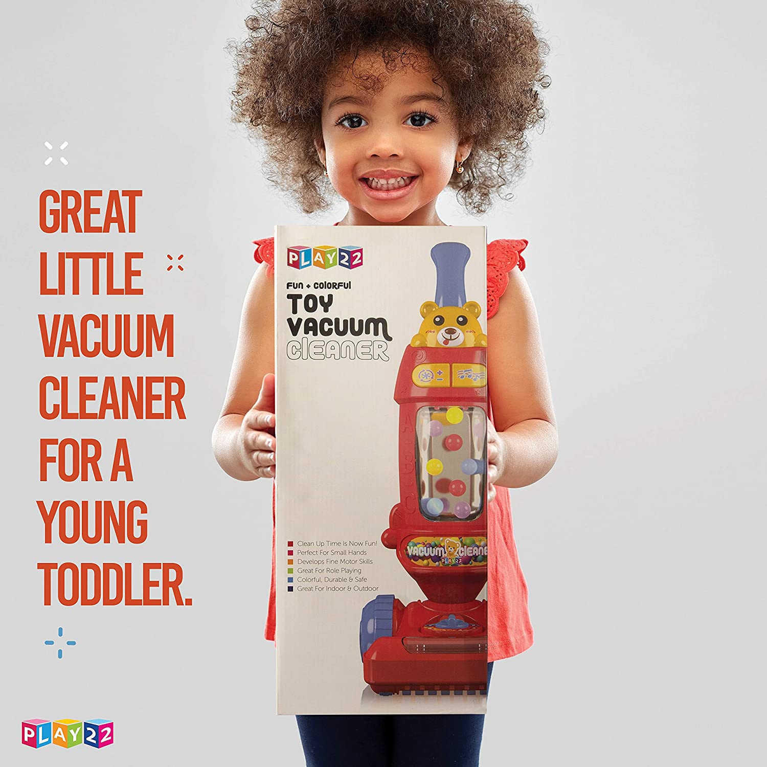 Ball Toy Vacuum Cleaner with working colorful lights and sounds Maneuverability of toy develops problem solving & motor skills. Laugh & Learn Light-up Learning Vacuum Tilts up & down, just a like a real vacuum.
