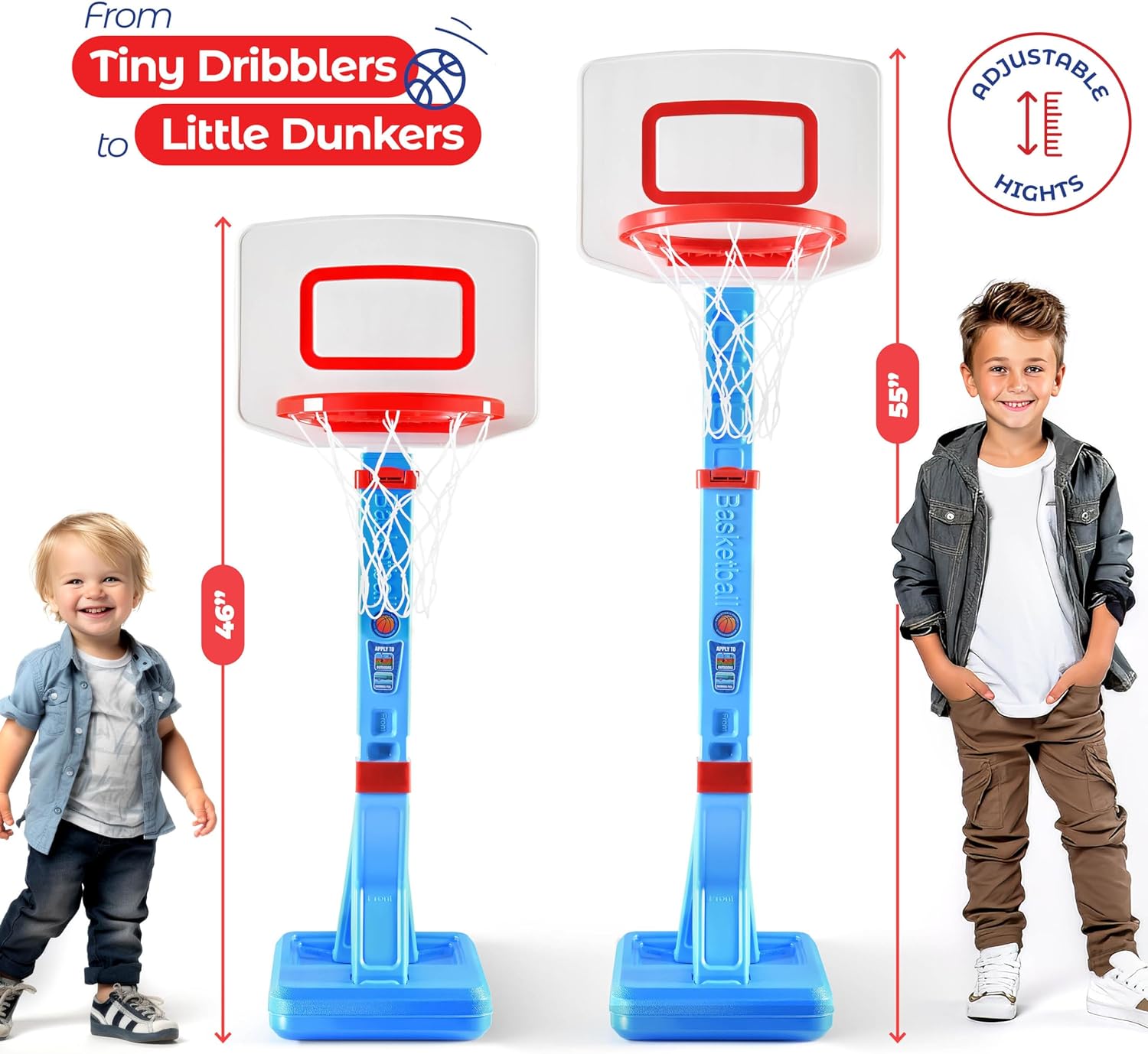 Adjustable Height: Featuring four height settings, this basketball goal accommodates kids aged 5 years and younger. The height can be easily adjusted to increase difficulty as your kids grow, making it perfect for growing toddlers.